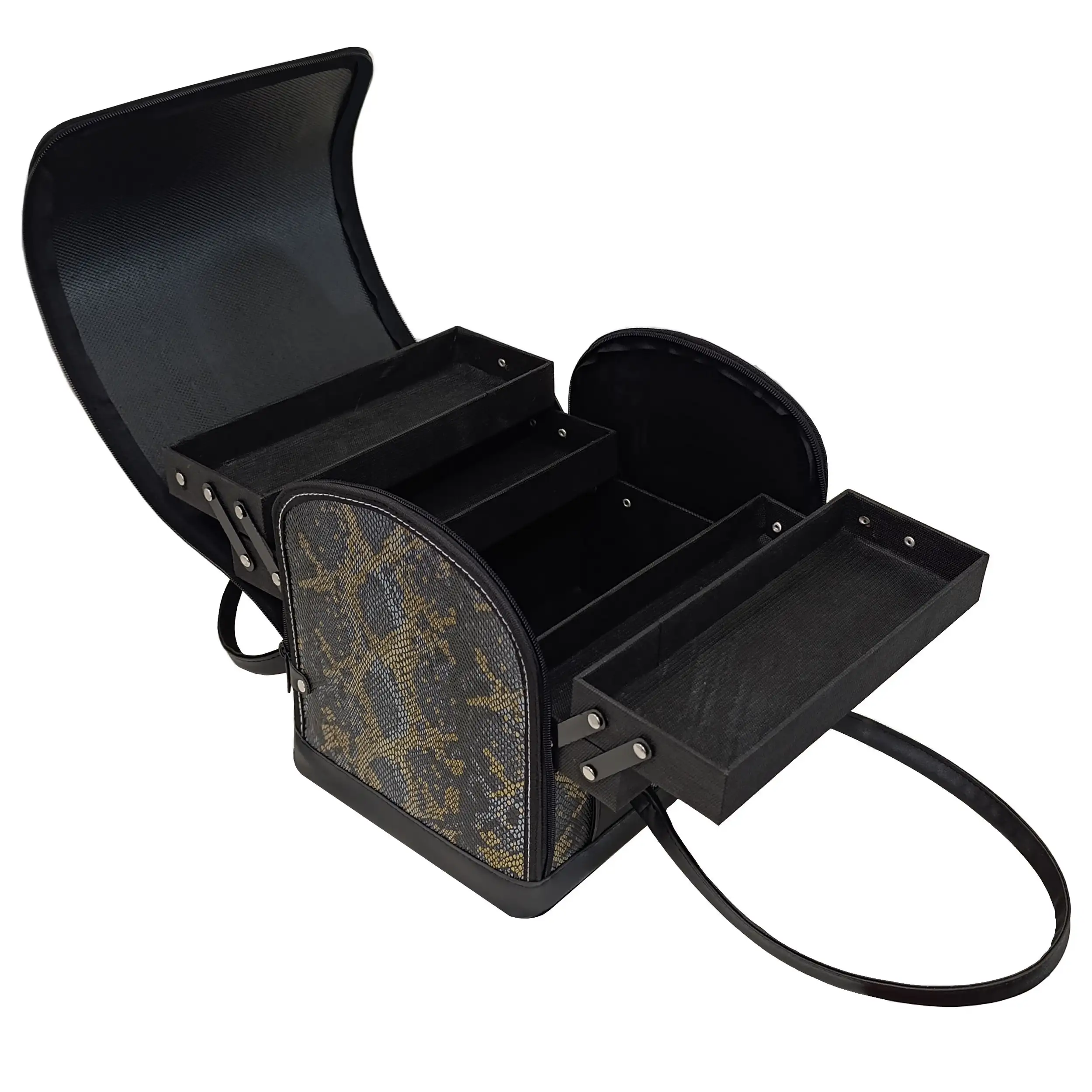 کیف وسایل آرایشی با طراحی کشویی ۳ طبقه، فضای کافی برای مرتبسازی انواع لوازم آرایش و اکسسوریها را فراهم میکند.